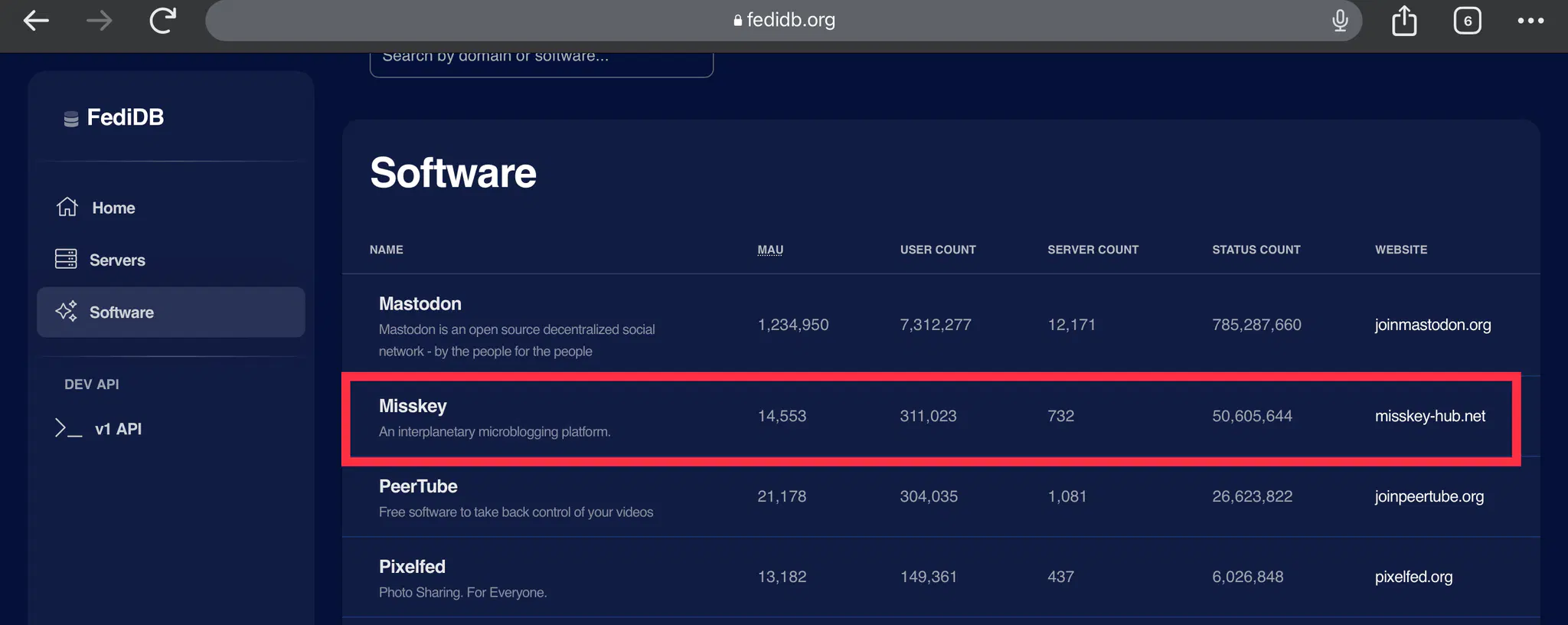 According to FediDB it seems as if Misskey has surpassed Peertube to become the 2nd most popular Fediverse software option available (this does not include variants or forks).