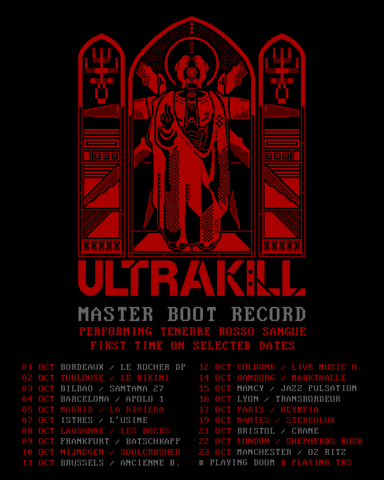We will perform "Tenebre Rosso Sangue" (ULTRAKILL Original Soundtrack) by KEYGEN CHURCH live for the first time at selected dates of our upcoming tour as special guests of Igorrr — alternating with our DOOM cover.