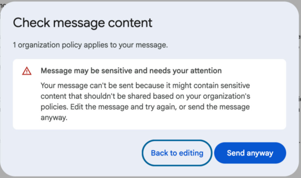 @billstatler It's not universally good or bad. The question will be how much it's useful vs confusing for any organization, because the warning doesn't specify what policy was violated, what content violated the policy of what exact rule or patterns were matched to check for a policy violation.