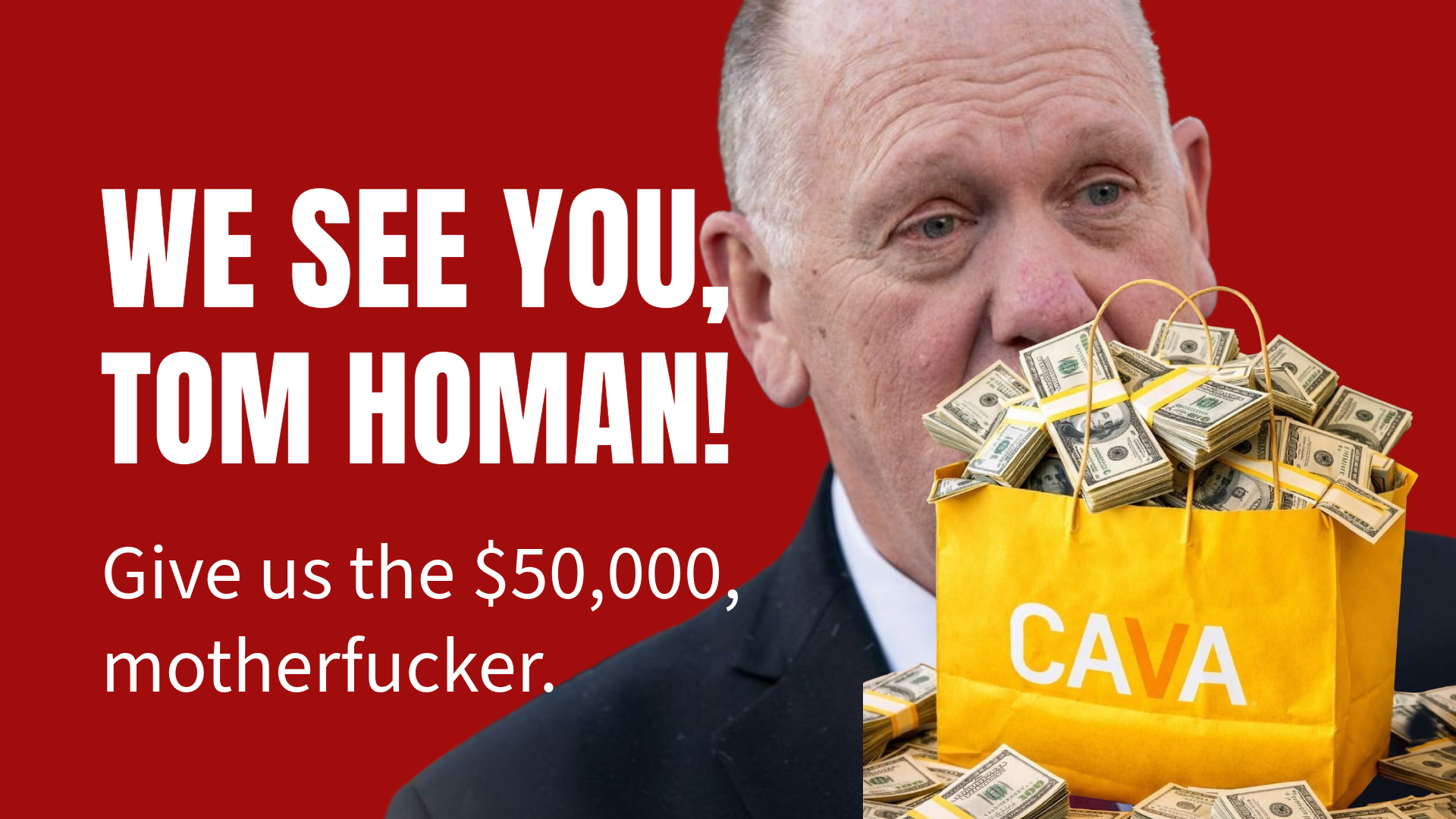 Hey Tom Homan: before you head to Minnesota, can you tell us where the fucking $50K is?